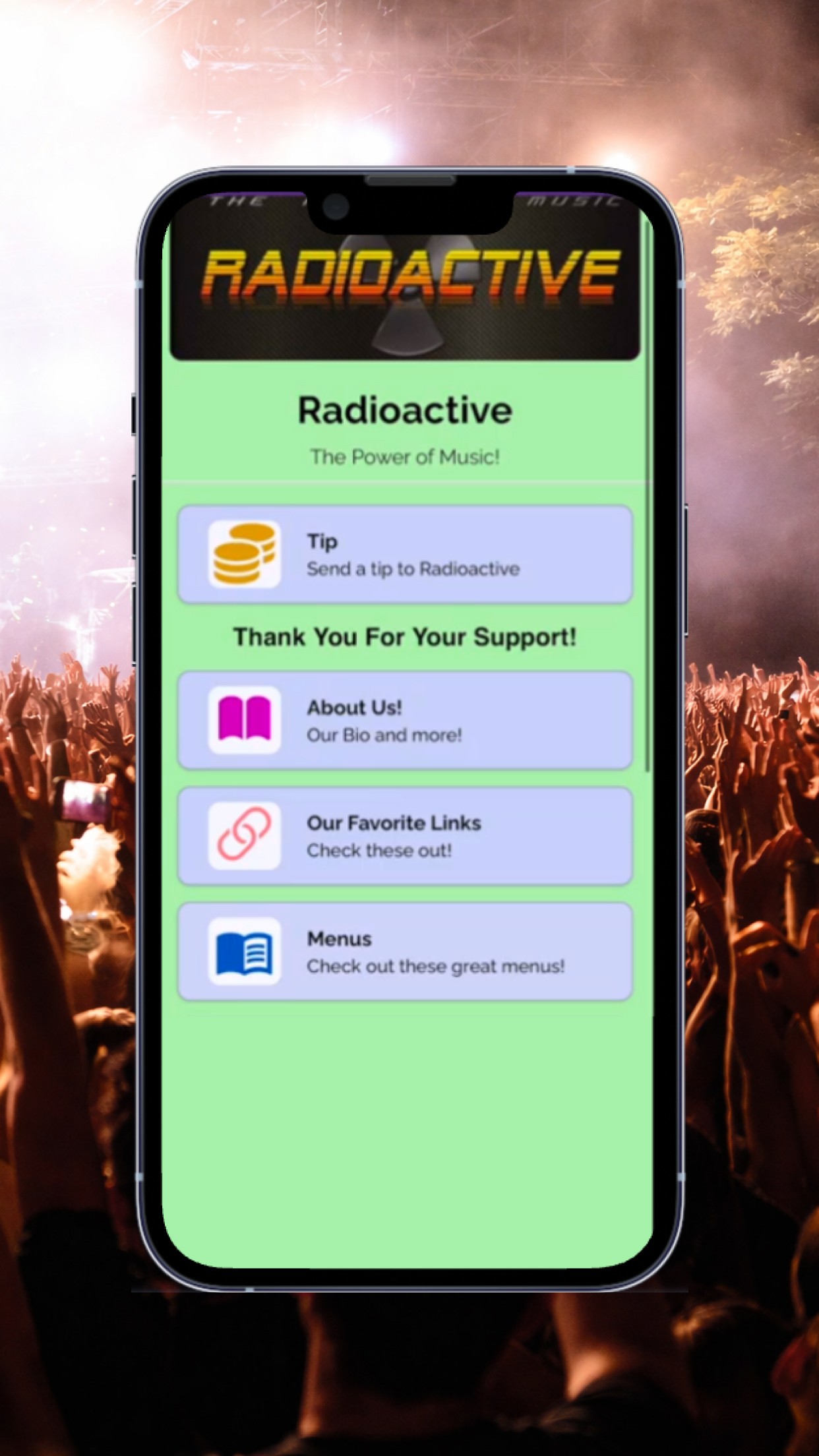 Direct your fans to any webpage you like. Make it "one tap easy” to reach your - Music online; Bio/EPK; Your Merch Store; Your equipment endorsers; The venue you are performing at; Other musical acts you perform in or endorse; Even your favorite local charity!